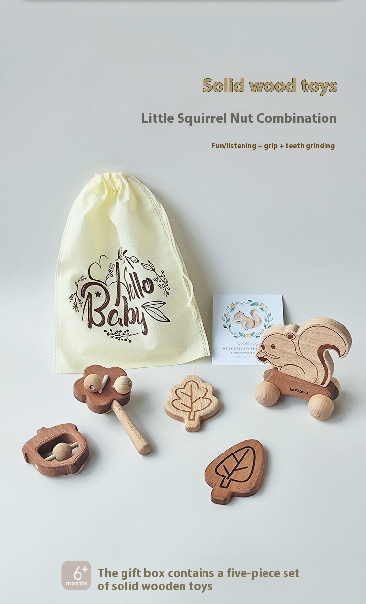 Little Squirrel Baby Gift Set – 12-Piece Cotton Clothing & Wooden Toy Box (0–6 Months)